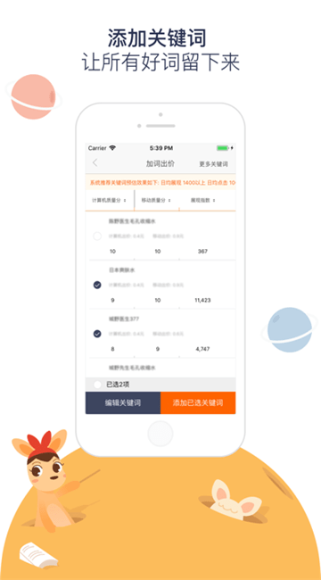 关注宝贝及关键词:根据推广状况,设置自己关注的宝贝和关键词,首页即可一键查看,快速优化操作