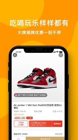 淘花卡app让你24小时购物优惠不停,每单还有返利可拿。