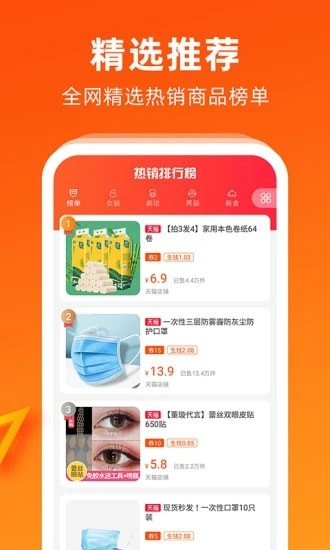 2、全天榜、实时榜、美食榜、母婴榜等都有,全类型购物榜单助力挑选好物;
