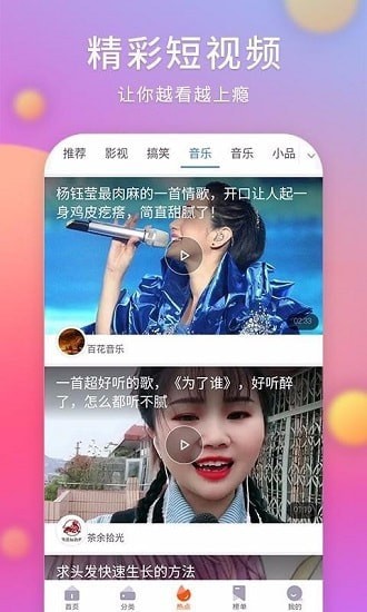 2、有着丰富精彩的短视频可以刷看,如搞笑、音乐、影视、小品等各类短视频;