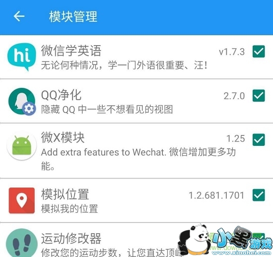 打开太极app,点击右下角加号,选中模块并勾选xp模块,例如微x模块