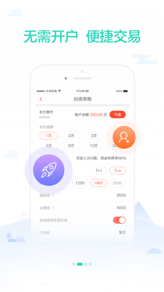 【全部本金搭档出】您在东盈策略发起的每笔交易金全部来自搭档,1万~20万交易本金任您挑选,使用灵活又方便。