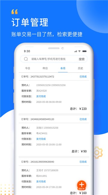 3、可根据需求,查看当天、本周以及本月的数据以及订单信息;