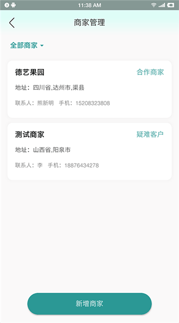 3、商家新增,不仅在此管理全部商家而且能够及时新增商家;
