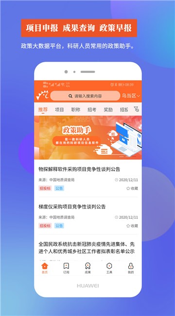 2.实时推送全国科研项目申报信息、科研成果信息、职称申报信息、补助补贴信息、比赛信息、政策信息、招考信息等。