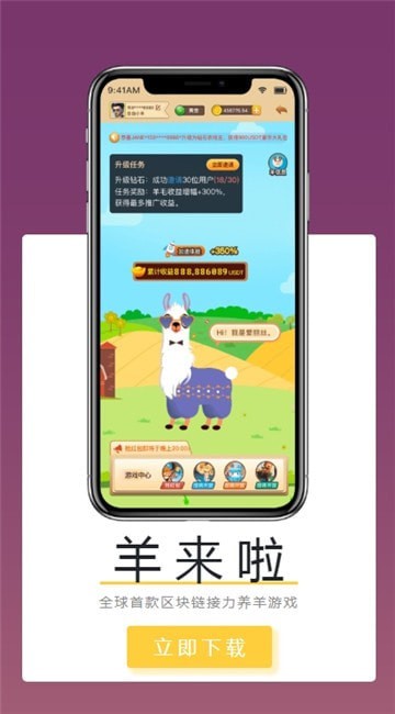 羊来啦,是一款区块链爱心接力游戏,玩的同时还能拥有可爱的小羊,而且还能实现收益。