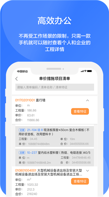 使用手机即可查询到工程的详情,掌握工程计价数额;