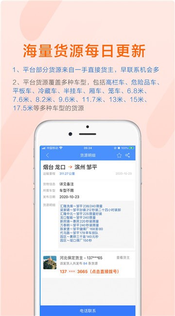 平台部分货源来自一手直接货主,早联系机会多平台货源覆盖多种车型。
