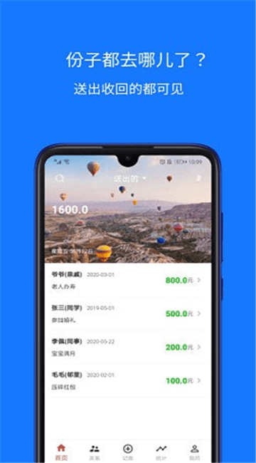 1.免费实用的份子钱记账功能,登录账号后同步据到云端,安全数据永不丢失;