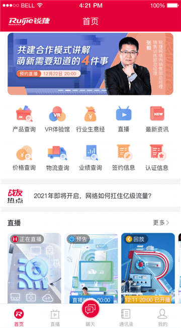 锐捷为广大用户提供锐捷产品和行业资料查询,可随时了解锐捷动态和最新直播活动。并为锐捷合作伙伴提供即时沟通服务,订单全流程可视。
