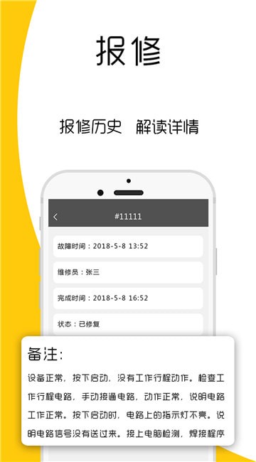 5、报修历史随时查询,个人提交的报修历史可以在此随时查询查看;