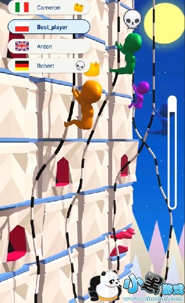 Climb Racer游戏是一款趣味性十足的冒险休闲游戏。以火柴人为角色主要元素,所有的玩家在同一个竞技场上进行攀爬比赛。巧妙的利用攀登过程中的道具,你将比对手快上很多。注意随时出现的障碍,可能会让你从零开始。