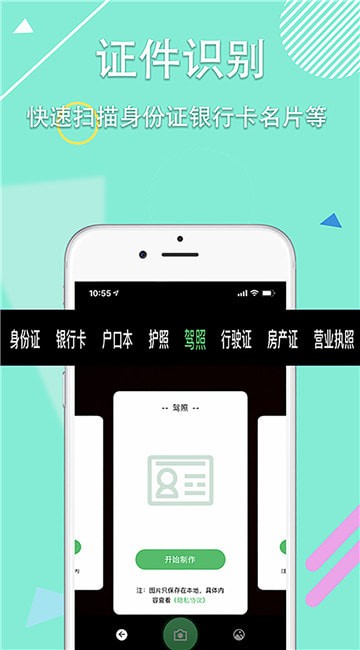 支持多种证件类型:身份证,银行卡,驾驶证,名片,营业执照,护照,电子运单,户口本,港澳通行证;