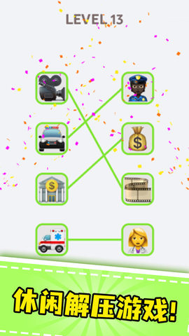 1、游戏玩法非常简单,像大多数连连看游戏一样,使用分支连接两个相同的图片以进行消除。
