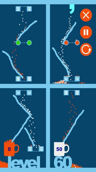 很适合用来放松心情的物理游戏。游戏中,你可以用鼠标画出一条路,引领细小的糖粒进入杯子,达到足够的数量就过关。注意有时候杯子需要接住相应颜色的糖,就要务必先让糖经过对应颜色的过滤器。