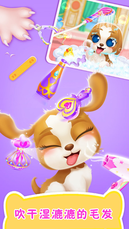 莉比小公主之宠物沙龙游戏是一款非常好玩的宠物养成装扮游戏,这个游戏画风设置的梦幻可爱,给玩家一种在城堡的感觉,玩法很简单,以参加婚礼为游戏的背景,玩家需要为不同的宠物来装扮,打造最可爱的发型!