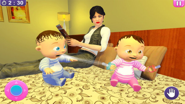从最初的真实母亲生活模拟器开始,但是您现在已经有了新生双胞胎婴儿,您必须非常小心地照顾他们,因为它们才几个月大。真正的母亲模拟器的游戏玩法:新生的双胞胎婴儿游戏3D讲述了新生的双胞胎婴儿Emma和Shawn在玩这个真正的双胞胎婴儿模拟器3D时正在照顾母亲的故事-新生的婴儿模拟器!因此,向虚拟母亲生活游戏打个招呼。有了这个妈妈模拟游戏,您就会知道妈妈在虚拟母亲游戏的现实生活中做了多少工作。