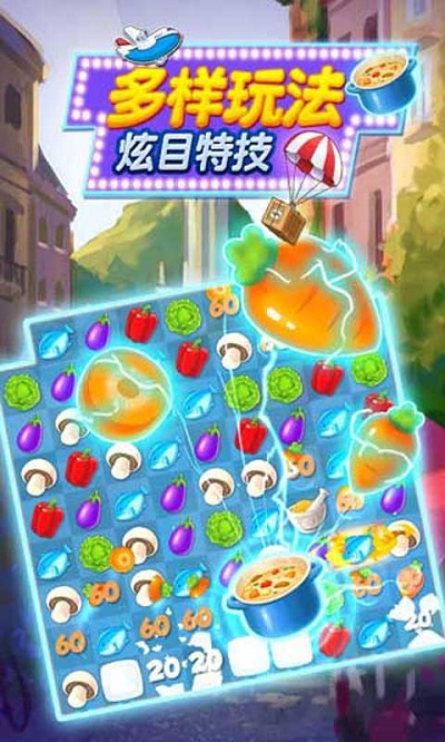 疯狂爱消厨最新版是非常好玩的休闲消除闯关游戏。游戏将三消玩法与美食主题相结合,玩家将通过消除闯关的模式,体验世界各国异乡风情,以及全新的餐厅经营玩法。游戏简单易上手,玩法丰富,丰富的关卡等你挑战。