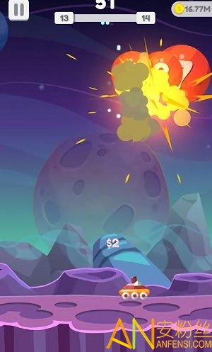 4.遵循物理弹跳效果,玩家需要敏捷的躲避掉落下来的星球;