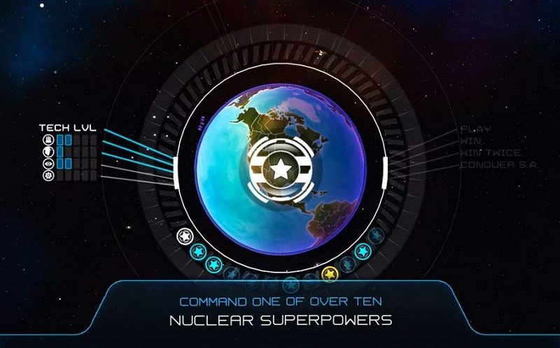 2、游戏的背景设定偏向真实,玩家可以从现有的几个核武器国家中选择一个作为开始,美国难度easy,朝鲜难度impossible。通过制定策略、下达指令来带领国家军事发展。