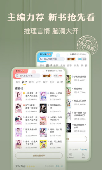 都市言情、玄幻修真、悬疑犯罪、游戏竞技、历史军事等精品原创,top小说榜单覆盖爽文,感受不花钱看好书的快感。