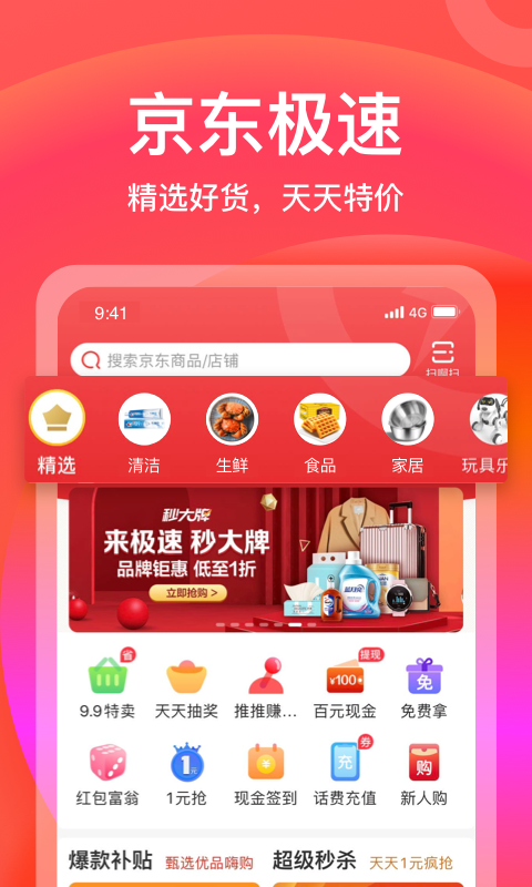 极速版是由出品,让大家在享受实惠购物、赚钱乐趣的同时也体验到品质服务的购物APP。