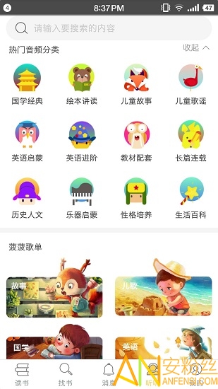 菠萝绘读手机版是一款专为小孩子打造的有声绘本app,用户可以使用菠萝绘读播放各种绘声绘色有趣的故事,还有多种语言模式可以选择,软件页面也非常卡通萌趣,能够十分吸引孩子的注意力,更好的完成绘本教育。