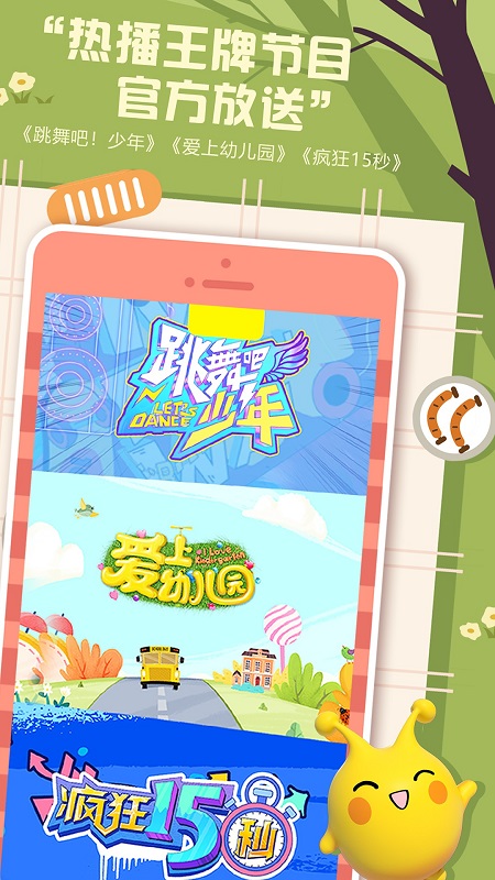 4、《跳舞吧!少年》、《爱上幼儿园》、《疯狂15秒》、《疯狂的球球》、《龙的传人》、《疯狂的麦咭》、《超能说学院》、《运动不一样》、《人偶总动员》、《麦咭小厨》、《中国新声代》、《超能一家人》、《童趣大冒险》、《爱宝贝晒一晒》、《飞行幼乐园》、《玩名堂》、《嘭!发射》等金鹰卡通优质亲子节目放送!