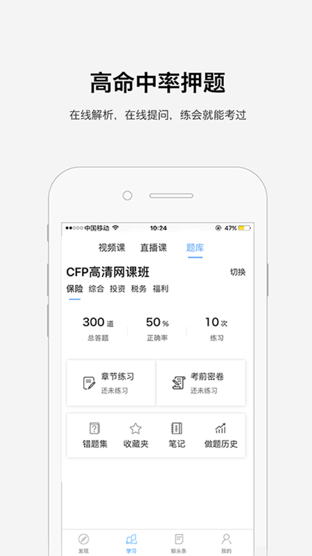 财富管理教育领导品牌,金融在线培训领跑者。基于学员海量的学习数据为基础,经过计算不断优化,为用户提供直播、题库、视频播放、考试资讯等全方位的学习服务。提升用户学习效率,节省用户时间成本。
