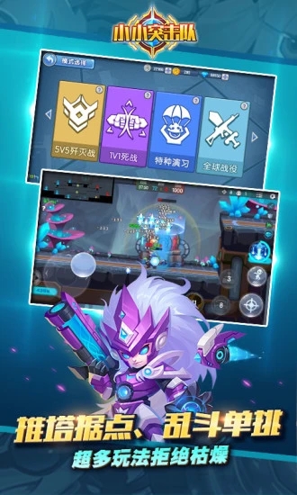 小小突击队最新版本是一款枪战游戏,玩家将要化身为英雄进行激烈的5v5枪战,有超多的英雄角色可以选择,不同的角色有着不同的作用,模式多样玩法丰富!想要玩的朋友来小黑手游网下载吧!