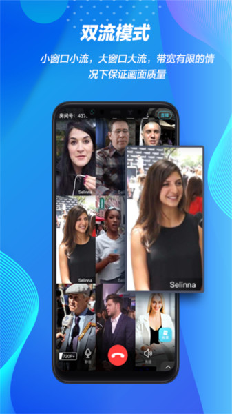 高流畅:直播接入端双流模式,保证多人连线画面流畅度和高保真音频,减轻网络压力。
