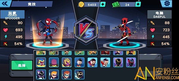 5.游戏采用了卡通风格,火柴人都化身为著名的超级英雄;