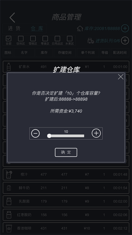 模拟经营我的超市游戏是一款文字题材的挂机游戏,游戏中玩家作为超市的店长,你需要完美的经营自己的超市,上架、下架、存贮各种热门的商品,并实时调整商品的价格,以最大的利益来盈利超市,游戏玩起来很轻松,但是要做大还是有不小的难度。