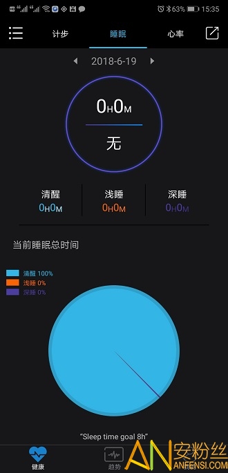2、记录每天的睡眠情况,告知您每天的深睡时间、清新次数和浅睡时间。
