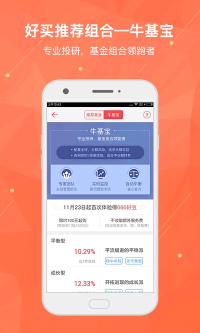 牛基宝--主动管理基金组合领跑者。专家团队主动管理,密切追踪市场,定期调整标的及配比。以成长型为例,自2015.1.1成立截止2018.6.26期间涨幅158.84%,超过94%的偏股型基金。