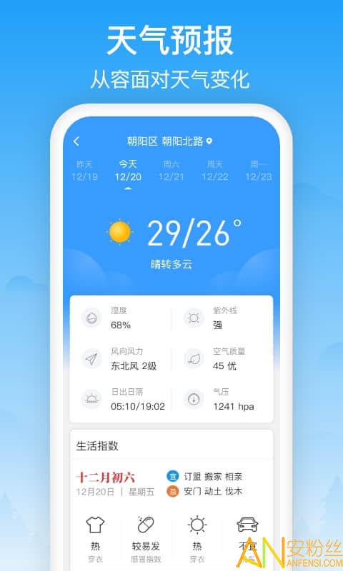 相雨天气是一个专业、贴心的天气app,为您提供及时、准确和全面的天气服务。您可查看全国各地的实时天气信息,24小时天气预报、未来15天天气预报、空气质量指数、温度趋势、pm2.5等天气信息。同时我们提供穿衣、紫外线、舒适度等生活指数,为您的健康生活保驾护航。