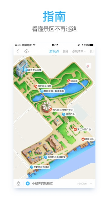 3、带来2.5D手绘地图,让看不懂地图的朋友也能便捷使用,在景区自由游玩;