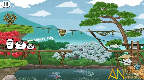 玩家一次只有控制一只熊猫,去隔断陷阱的绳子,非常有趣
