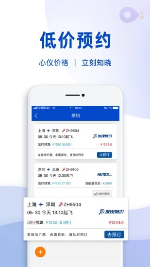 只要设置出发到达城市、预期出发时间段,即可告别天天盯着手机刷机票的时代。 关注您的心仪航班/航线,当余票量低时,系统会直接通知您订票,特价机票再也飞不出你的掌心。
