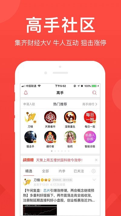 3、组合:查看实战高手(智能投顾)投资组合和调仓记录,及时买进卖出,轻松跑赢大盘。