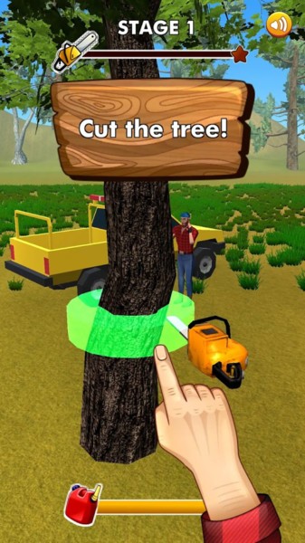 疯狂的伐木人游戏中你将扮演一个伐木工人,通过各种途径进行伐木。通过木柴的砍伐换取各种道具,比如更加强大的伐木工具,运送木柴的各种汽车。每一关的伐木任务都是可以进行星级评定的,努力砍伐吧获得更多的星星。