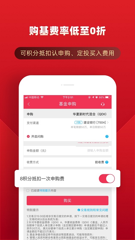 - 支持基金转换业务申购补差费的积分抵扣功能;