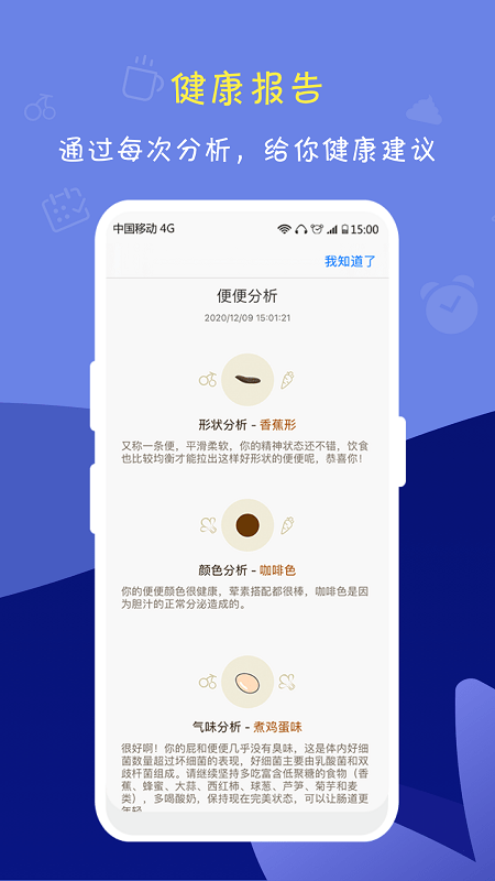 便便历经千辛万苦从肠道通关,为你报告最实时、最准确的健康情报,你会选择直接忽略?当然不要!为你全方位记录、分析、解读便便发来的一线健康情报,让你的手机秒变便便分析利器。
