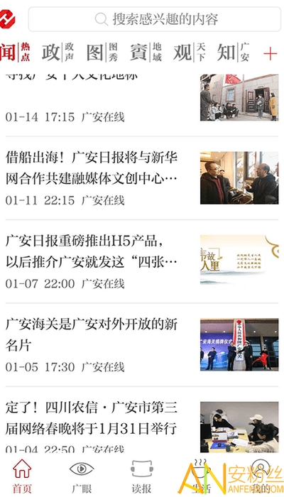 天下广安app是一款独特性质的阅读类型的软件,让你看遍广安的所有新闻,能通过其中给你最新的资讯,不管是看报看内容,给你的感觉就是一个简单又实用的掌上阅读软件,各种大事小事都在这里,喜欢的小伙伴快来小黑安卓网下载吧!