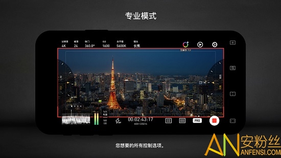 PRO专业模式:这个模式为专业的视频拍摄者而生。所有的相机数据,以及控制按钮,都被非常科学地放置于界面上。你*想使用的功能,永远在眼前。