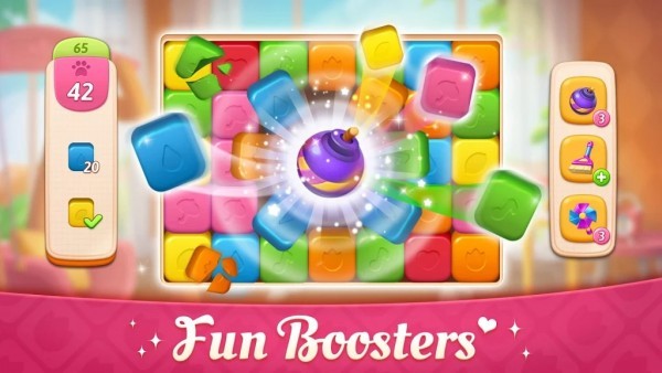 2、简洁美观的游戏界面,海量精心设计的游戏关卡等你来玩,趣味三消玩法。