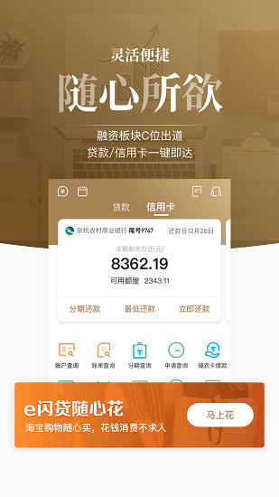信用卡:账户查询、账单查询、信用卡转出、信用卡分期、普惠宝、积分查询、手工还款、自动还款、账单设置等