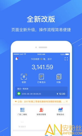【收款】商户可快速开通多种移动支付收单方式,支持消费者扫码支付、刷卡支付,收款便捷;