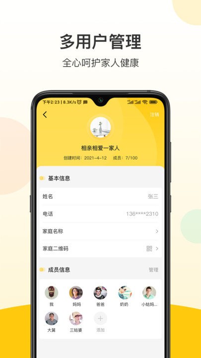-查看每个家庭成员的实时体温。