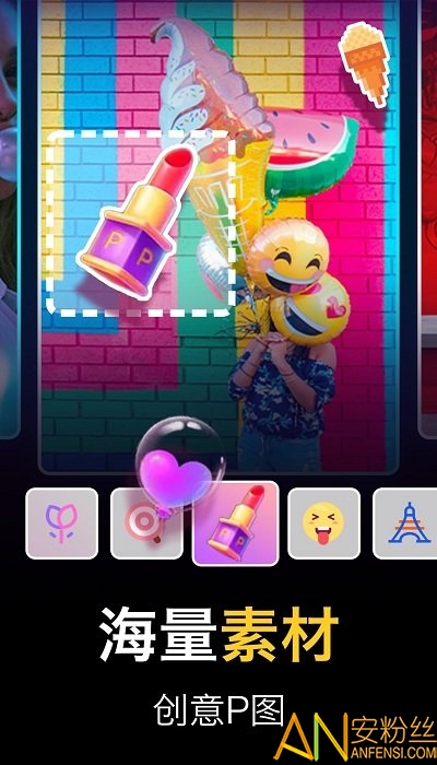 4、超多创意贴纸,搞怪、可爱、复古等多种风格,发挥你的P图创意